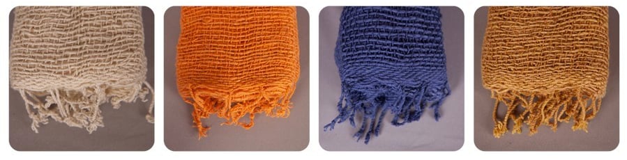 These handwoven cotton scarves are light enough to wear as a scarf, but wide enough to use as a light shawl. They're the perfect accessory for any season of the year!