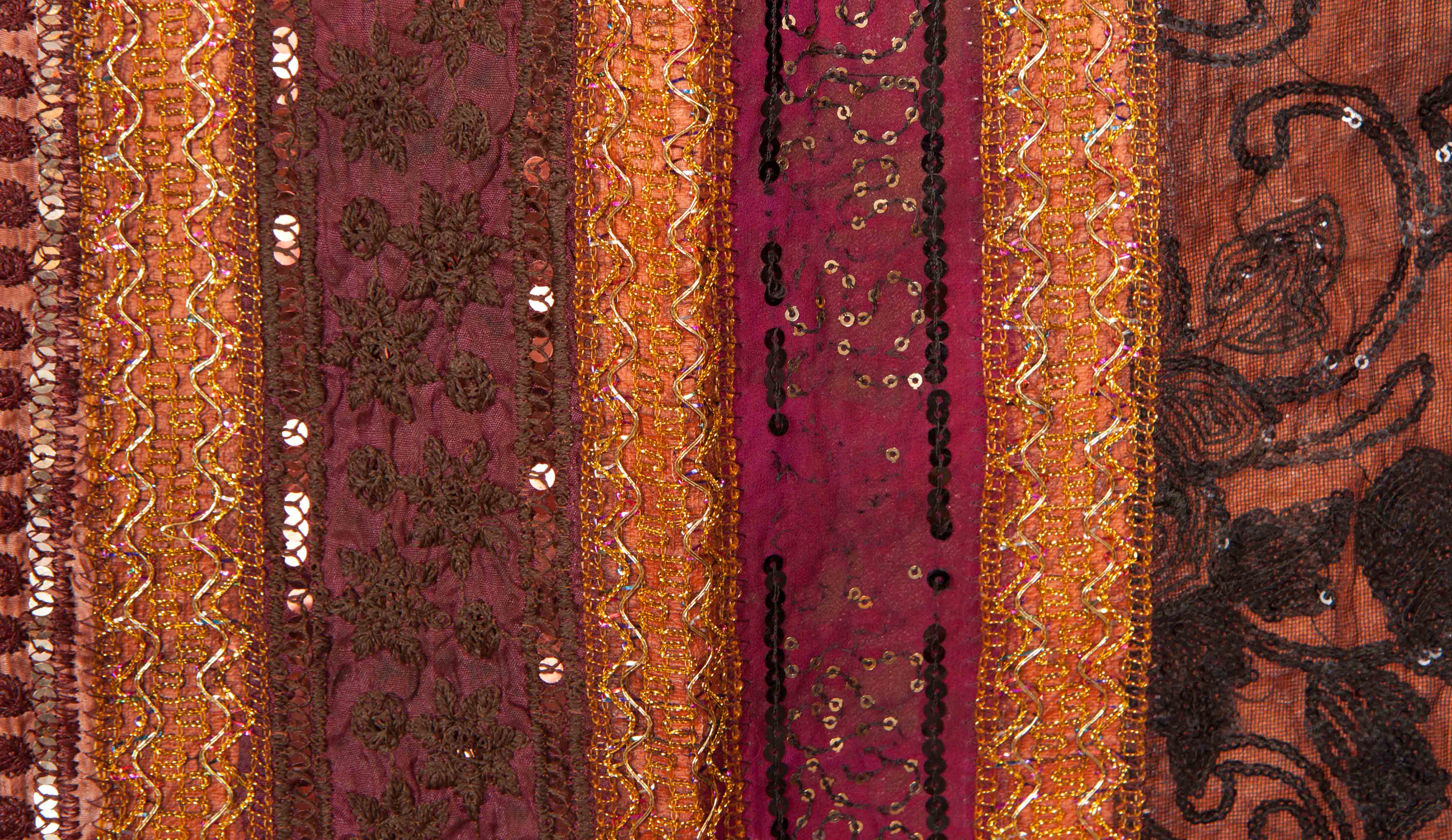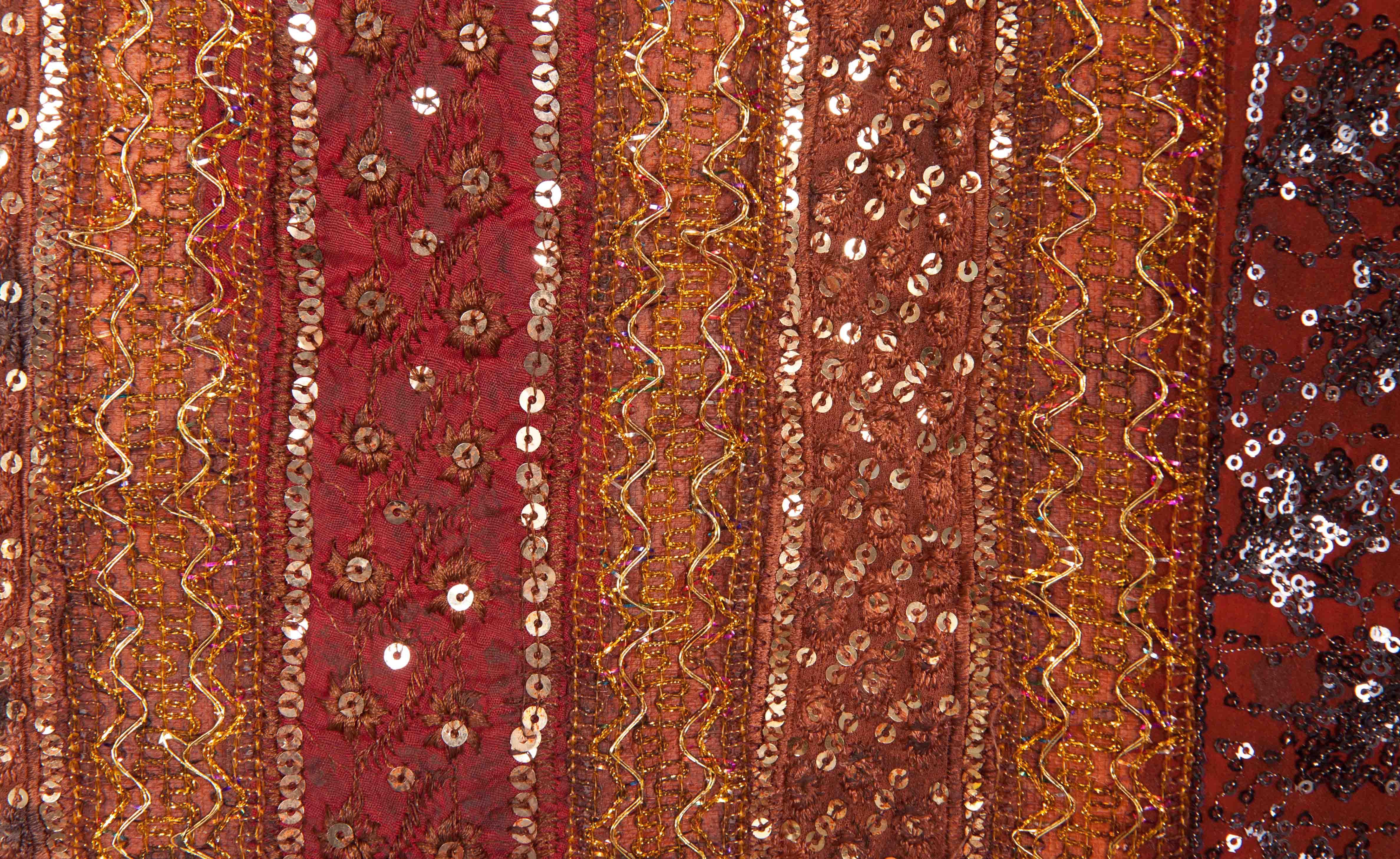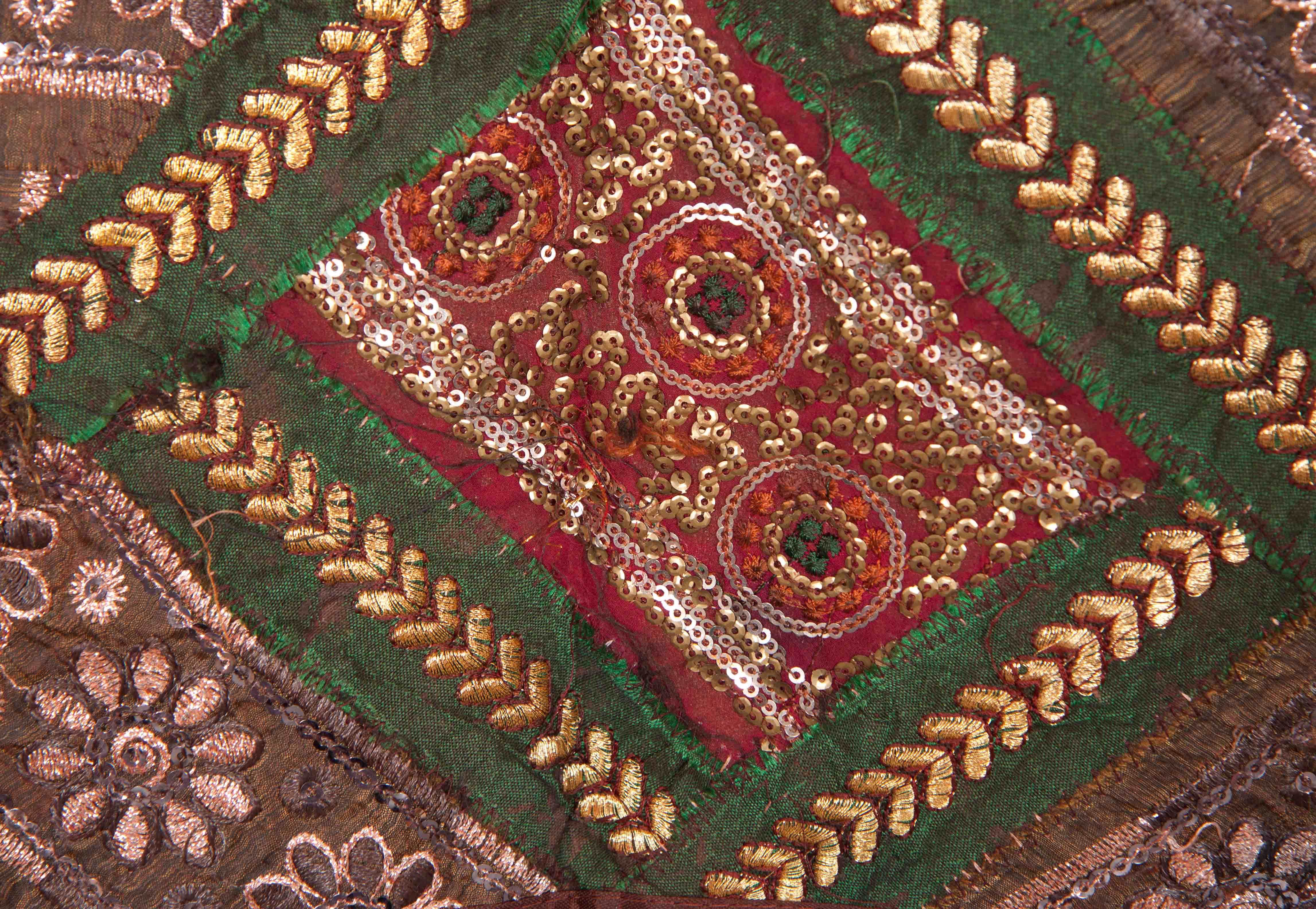 This one of a kind tapestry was handmade by an artisan in India. The sequined embellishments and rich jewel tones of this piece will bring the beauty of India into your home. Use it as a wall hanging or table runner. Any way you display it, it will become an instant conversation piece!