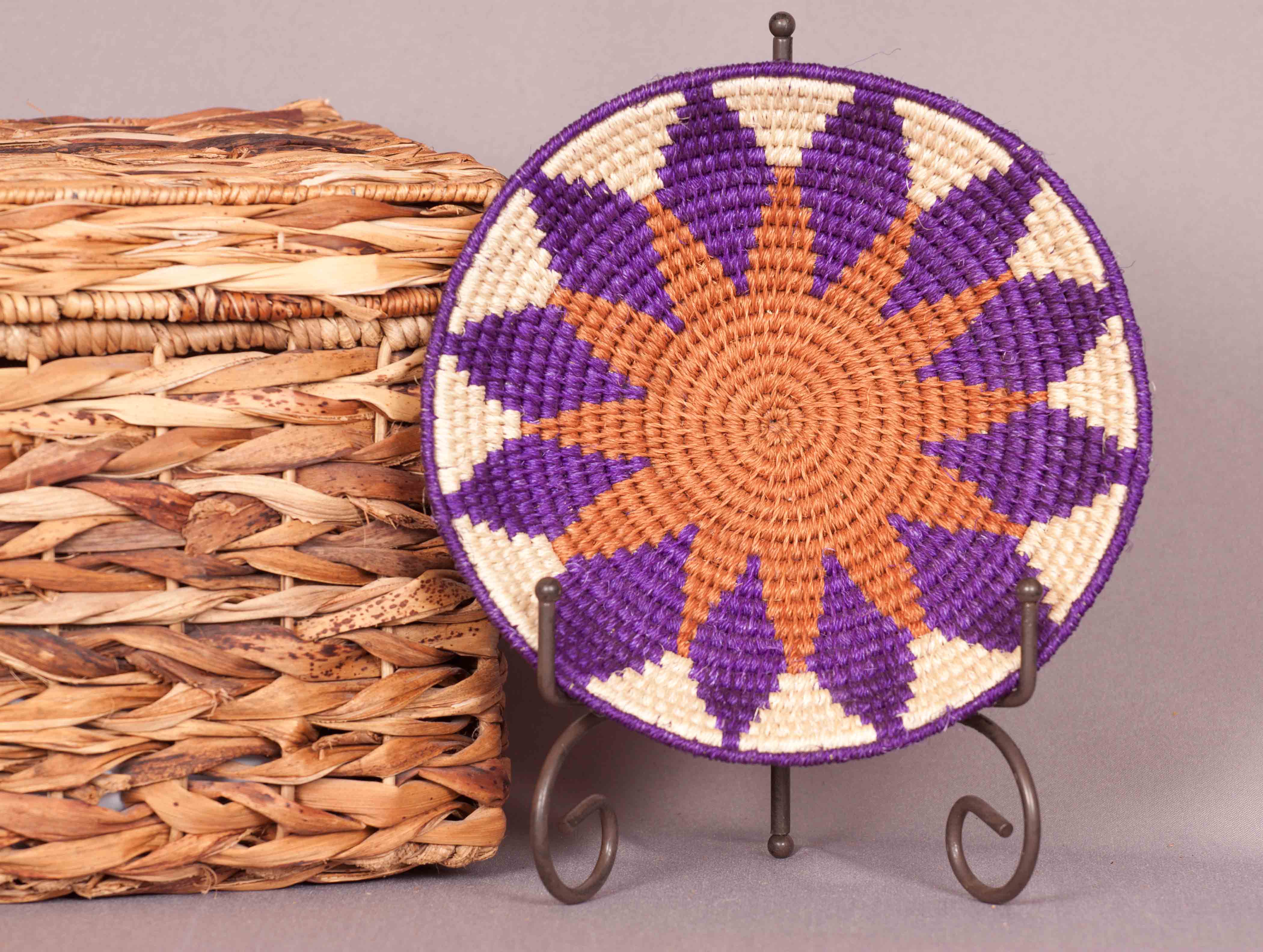 Woven Grass Bowl - Purple, Burnt Sienna, & Cream