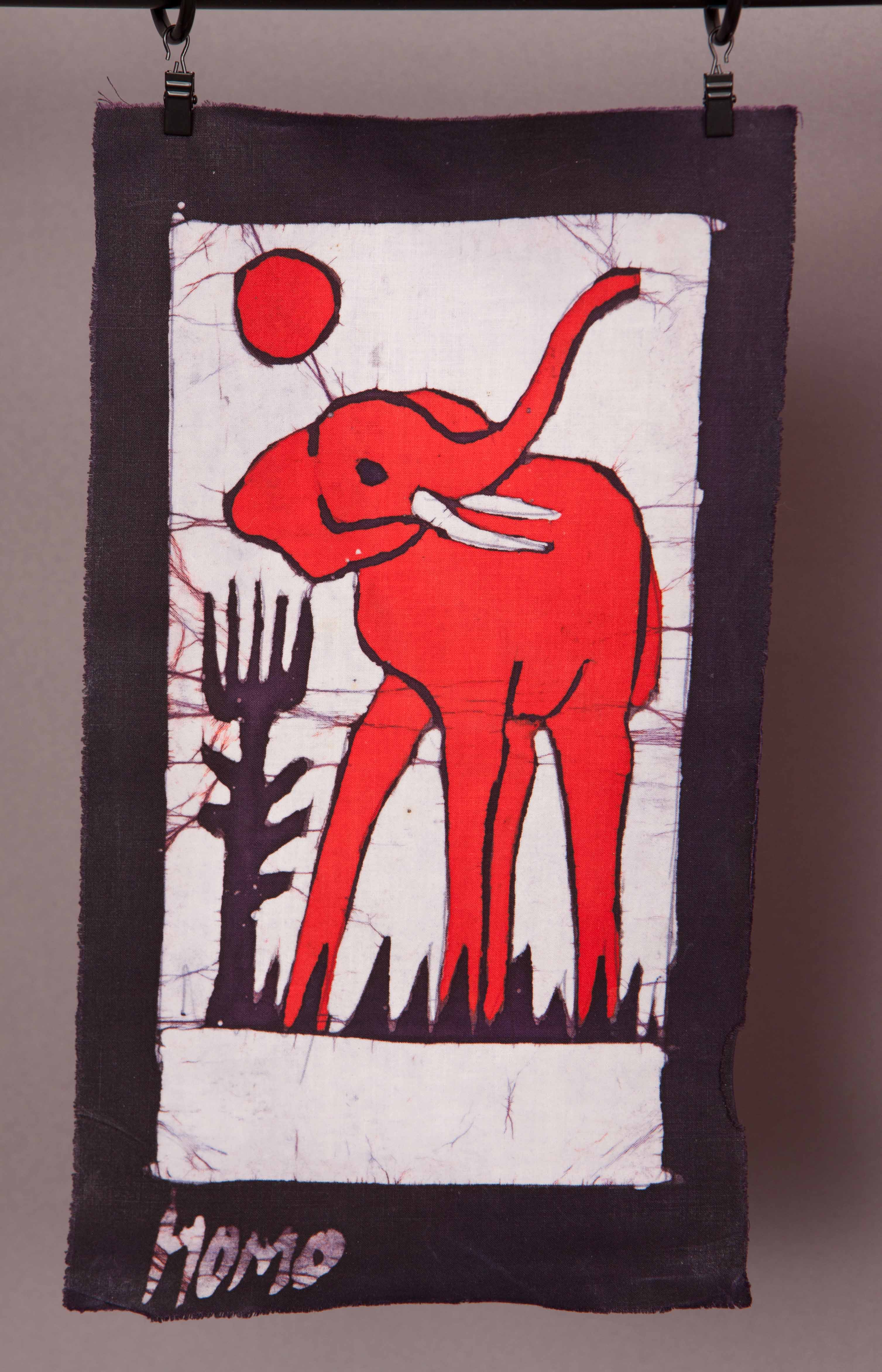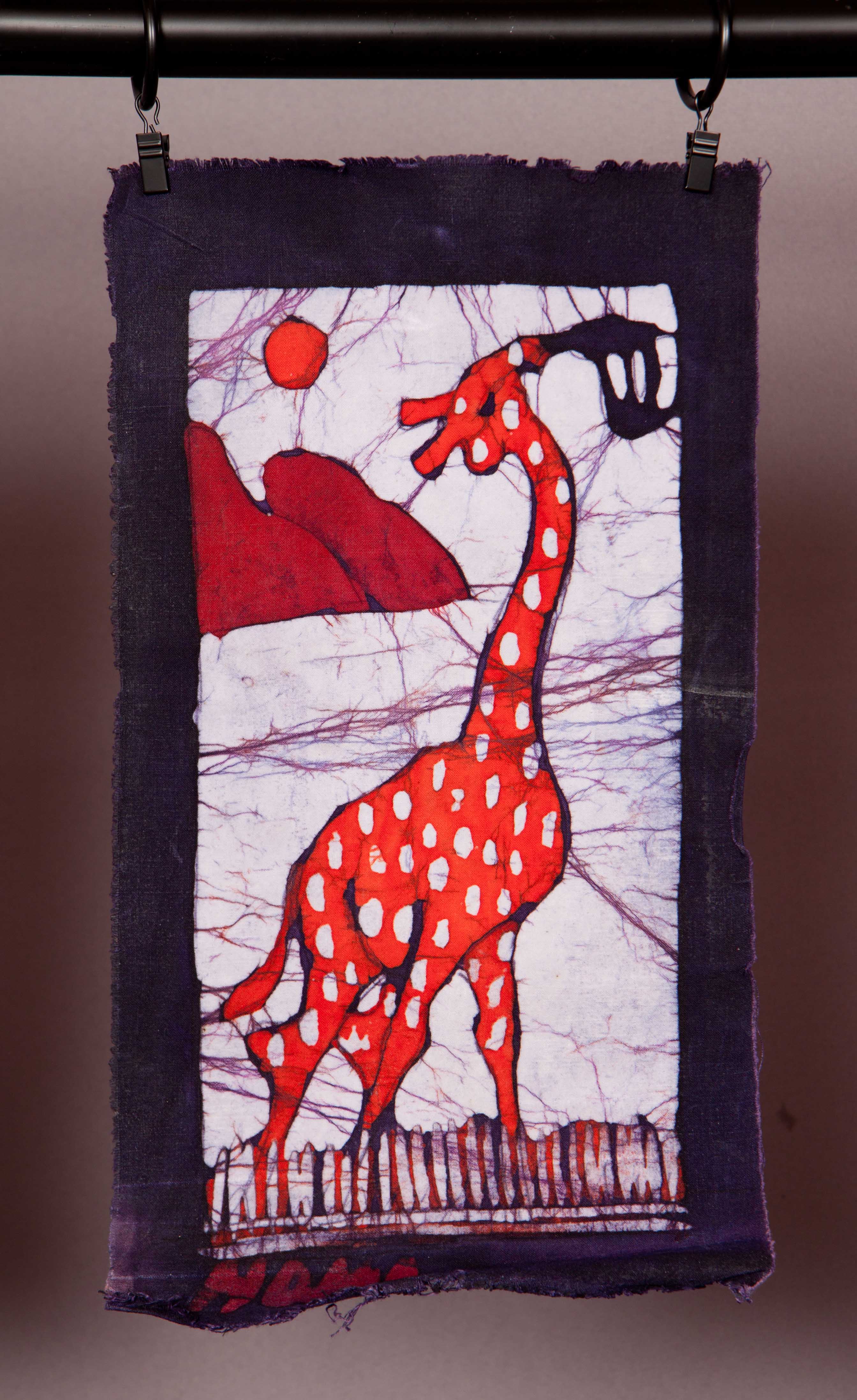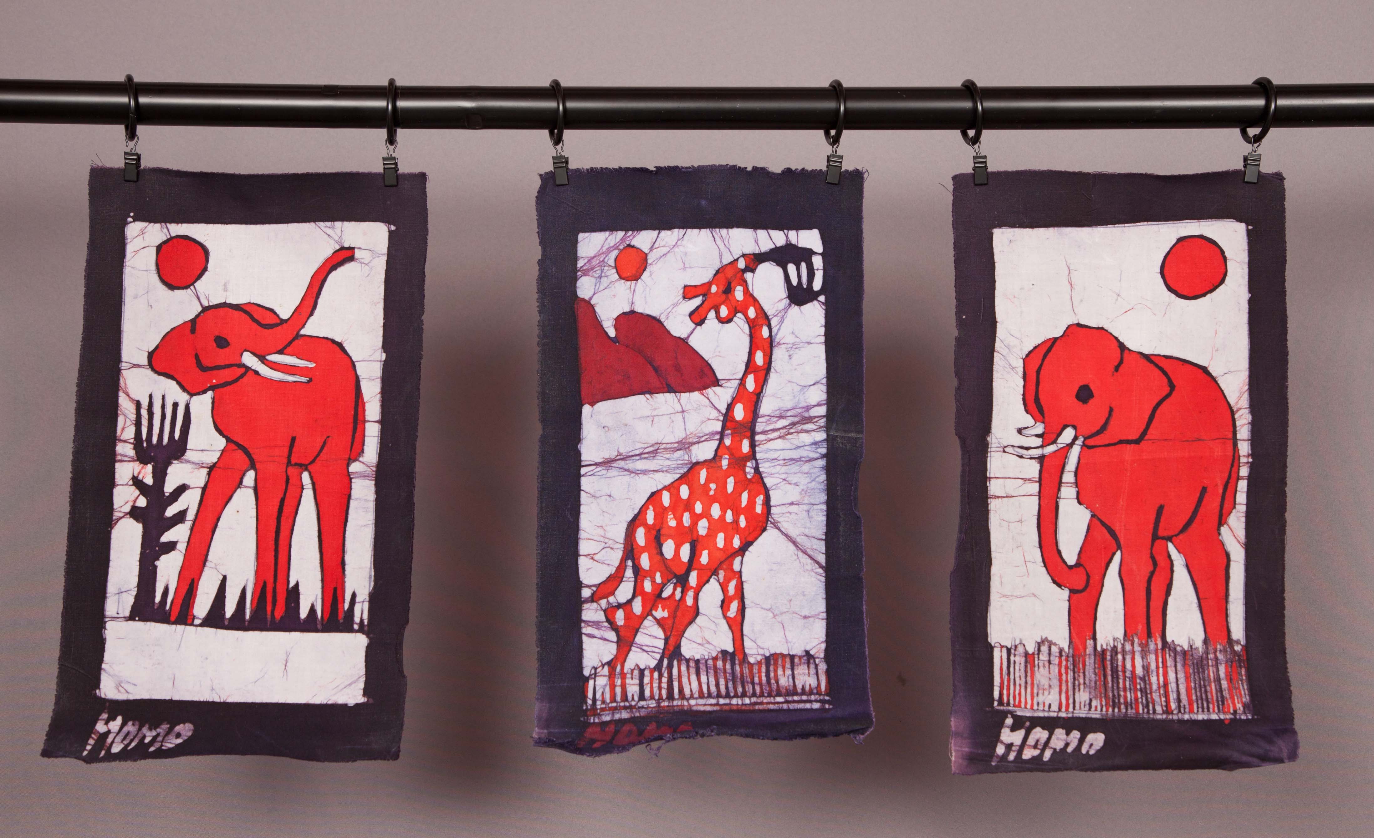 "Safari at Sunset" includes three hand-dyed Batik panels, created by a Swazi artisan. This is an original piece of art - completely unique and signed by the artist.