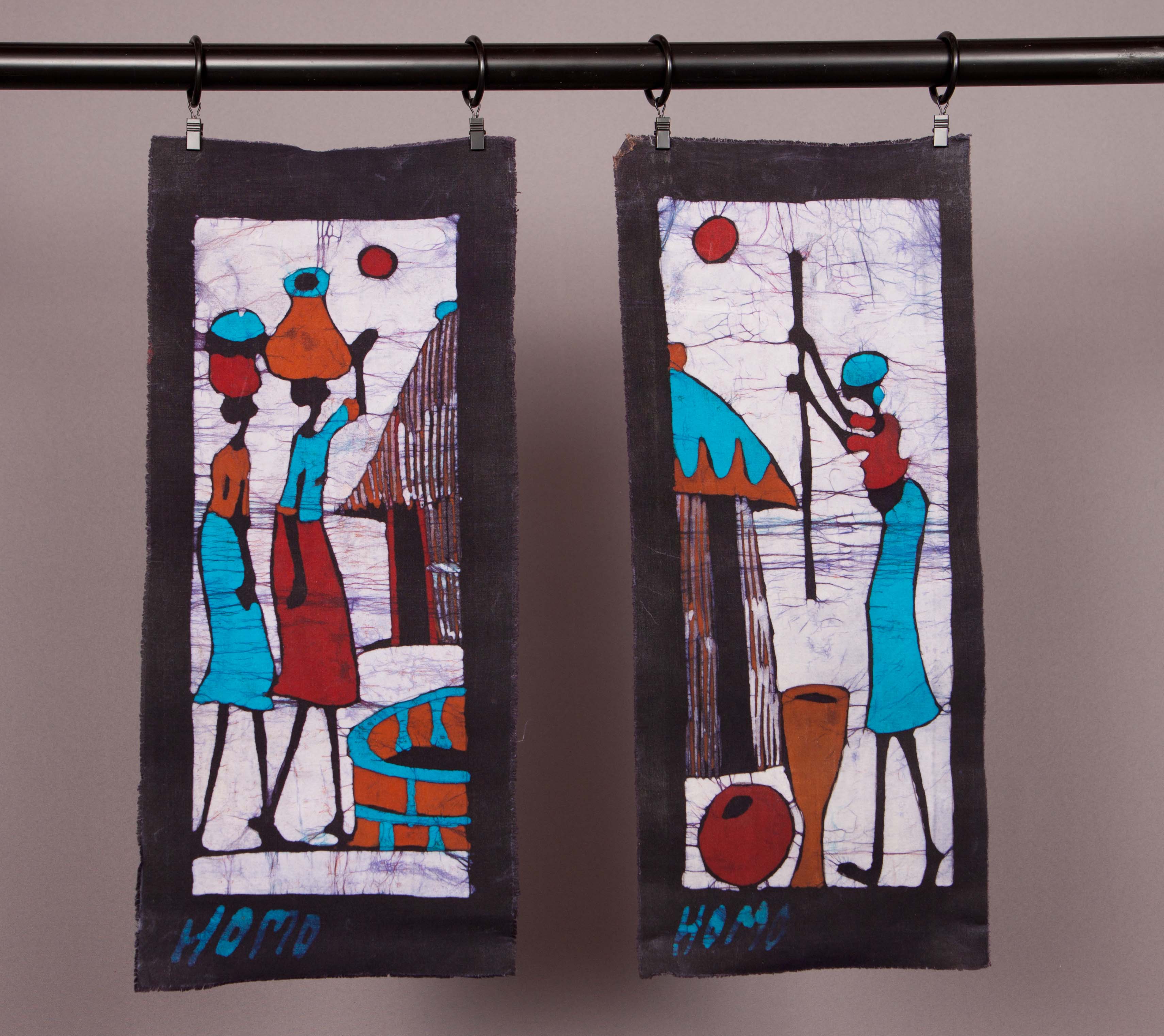 "The Women of the Homestead" includes two hand-dyed Batik panels, created by a Swazi artisan. This is an original piece of art - completely unique and signed by the artist.