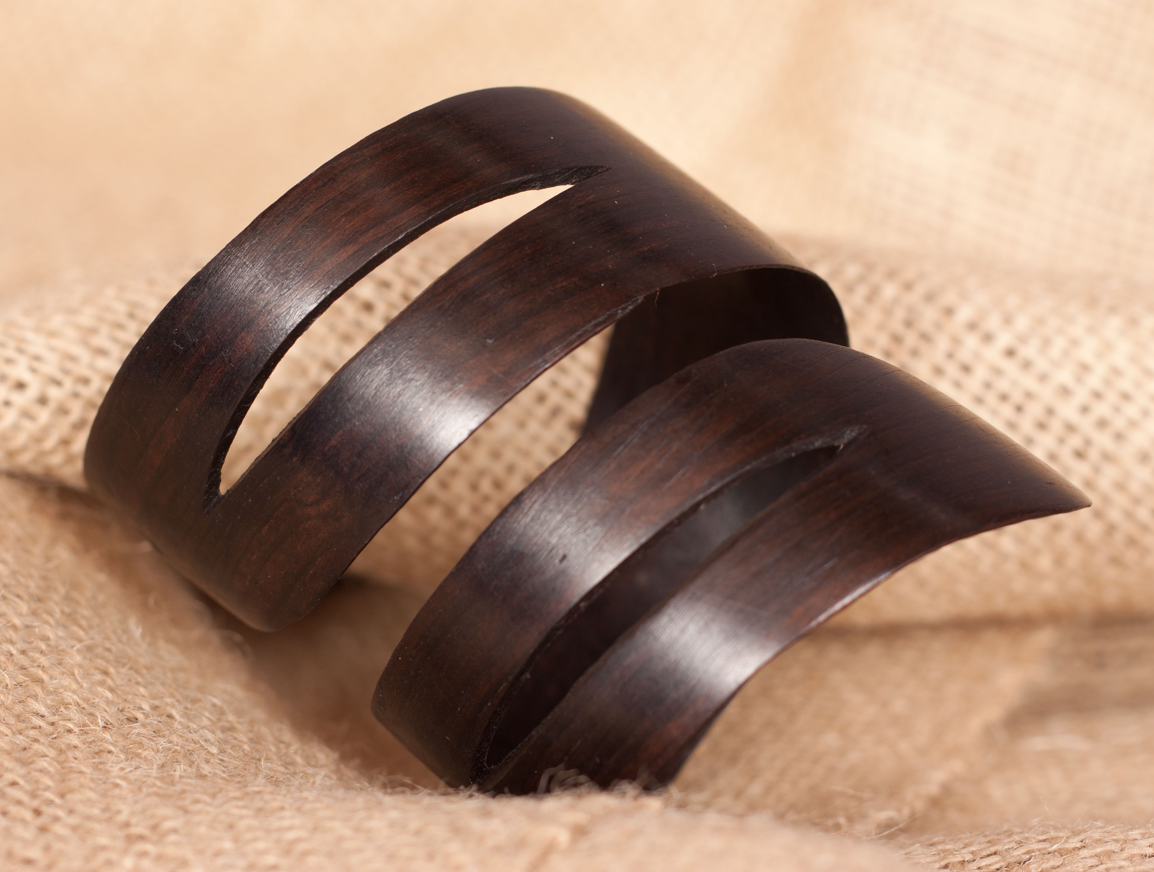 Carved wooden cuff bracelet, handmade by a Swazi artisan.