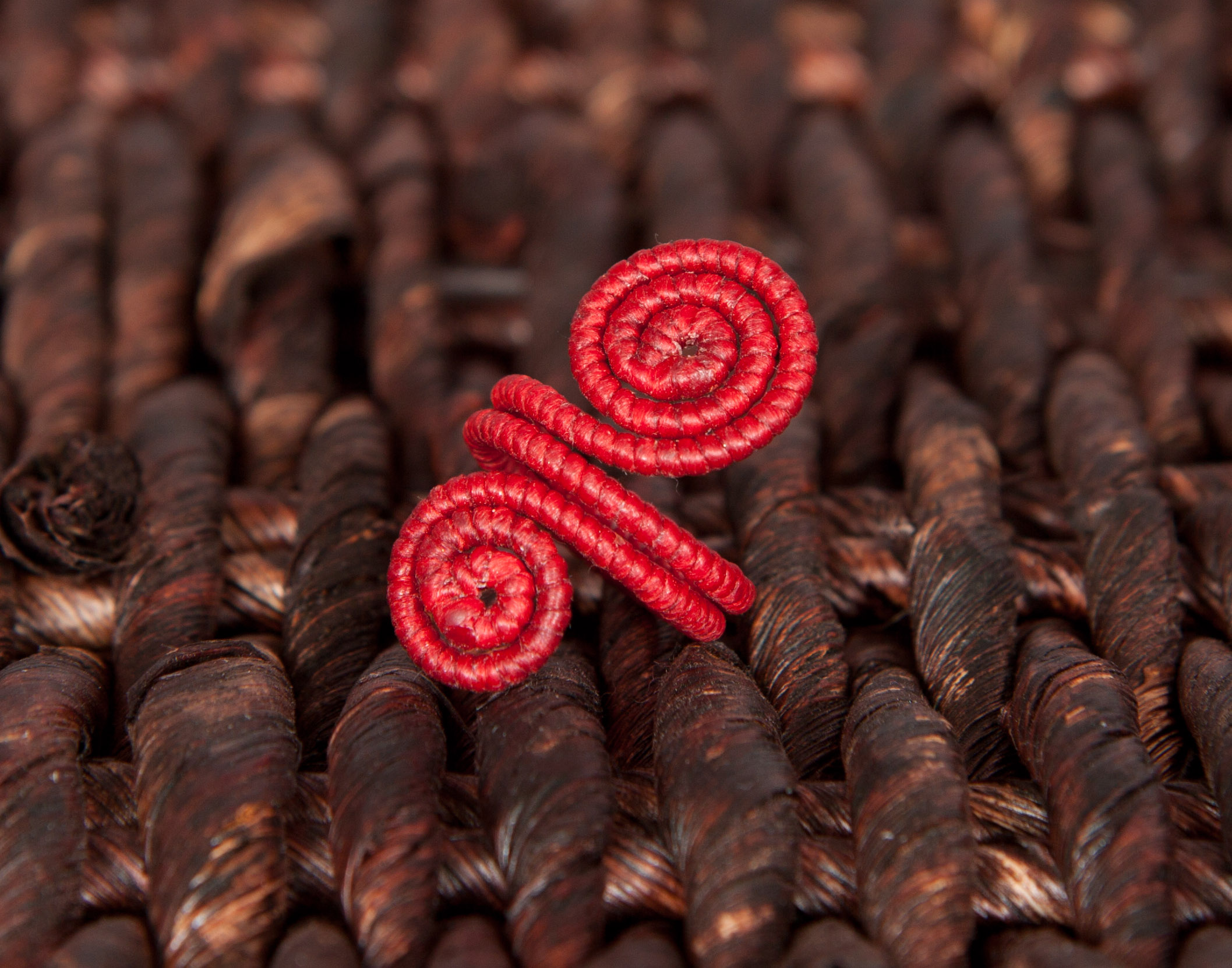 These stylish rings are designed and handmade by an artisan in Northern Thailand. Each ring is made of dyed wax thread, twisted around adjustable wire. They are a bright and funky accessory to be worn alone, or with any of our matching earring sets!